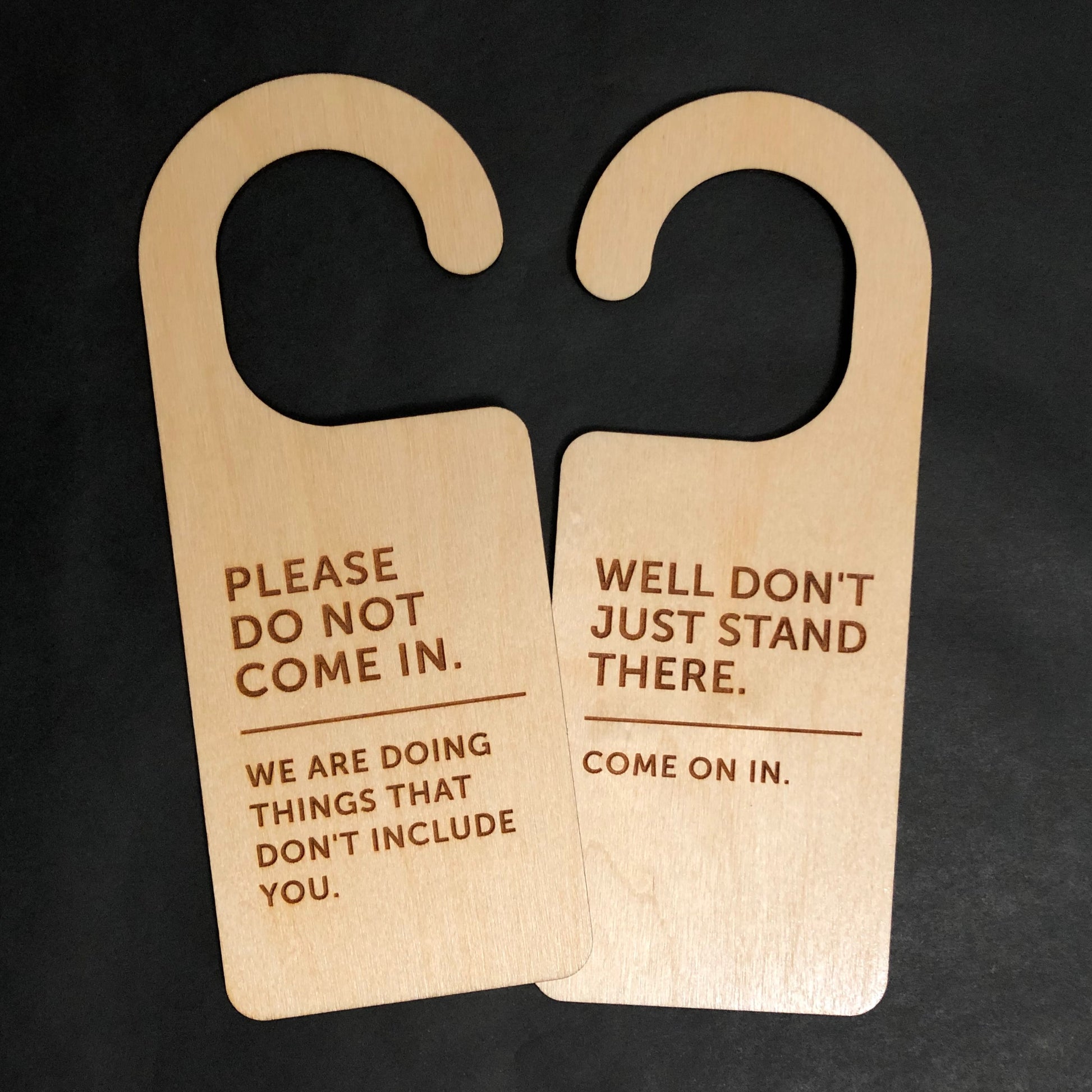 The Do Not Come In Style Door Hanger is double sided and includes the following messages: