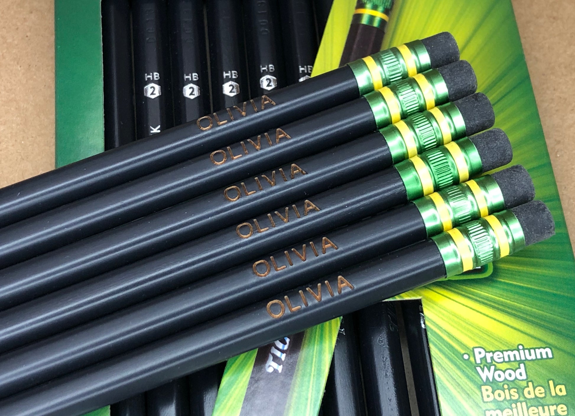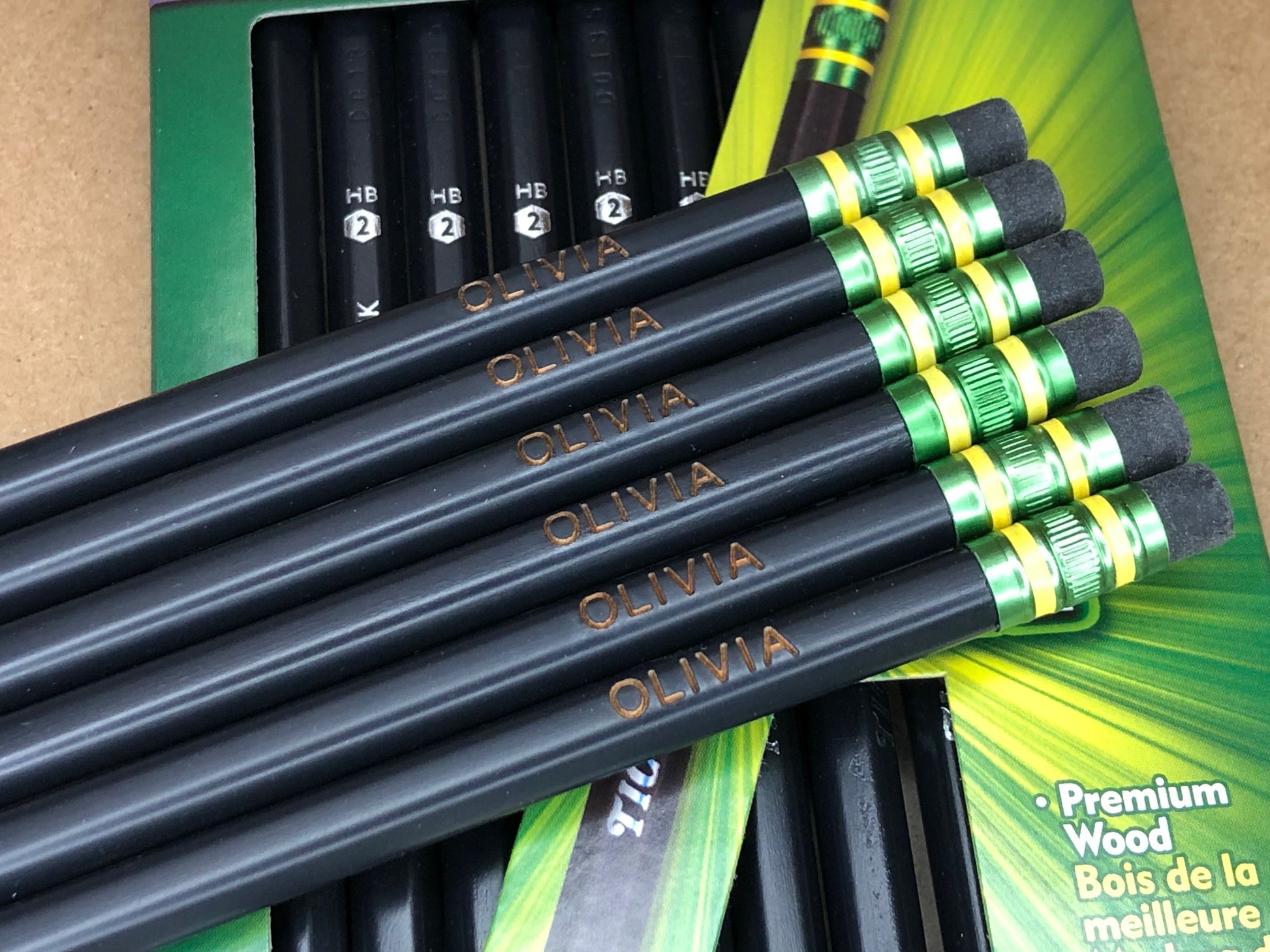 Personalized Black Pencils, 12 Pack of #2 Pencils, Engraved Ticonderoga Black Pencils
