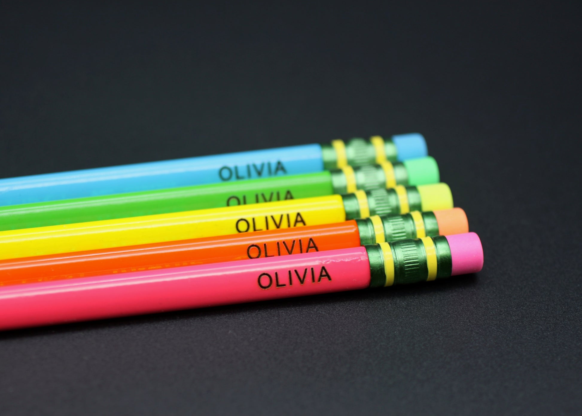 Laser Engraved My First Ticonderoga Tri-write Neon Pencils by Made On Earth NYC.