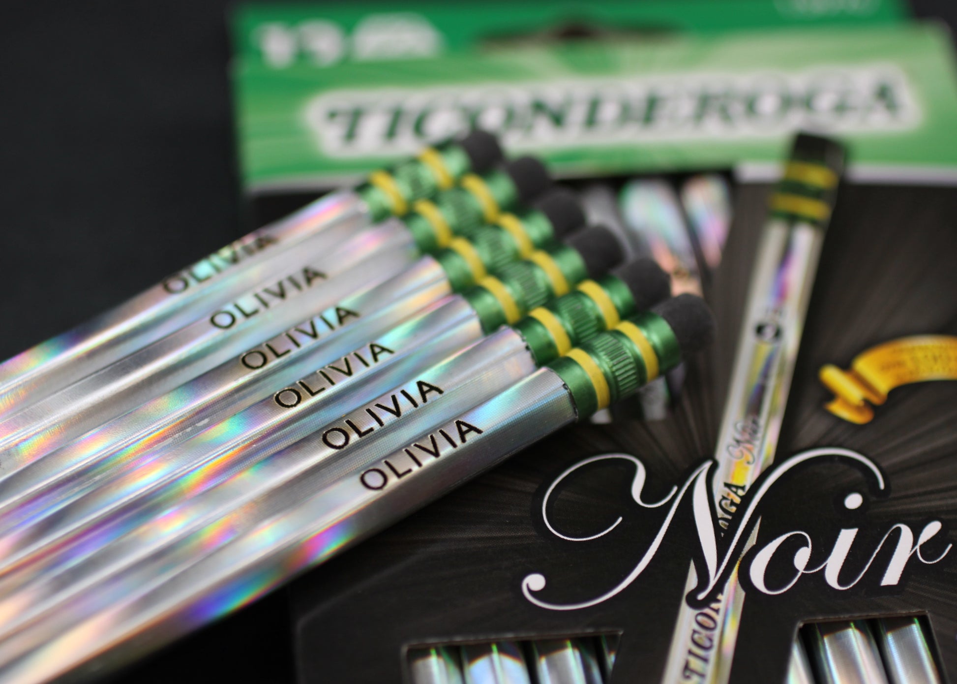Ticonderoga Noir are finished with an elegant holographic design that looks like crystal. Ticonderoga Noirs are made from premium stained black wood that will remain black when sharpened.
