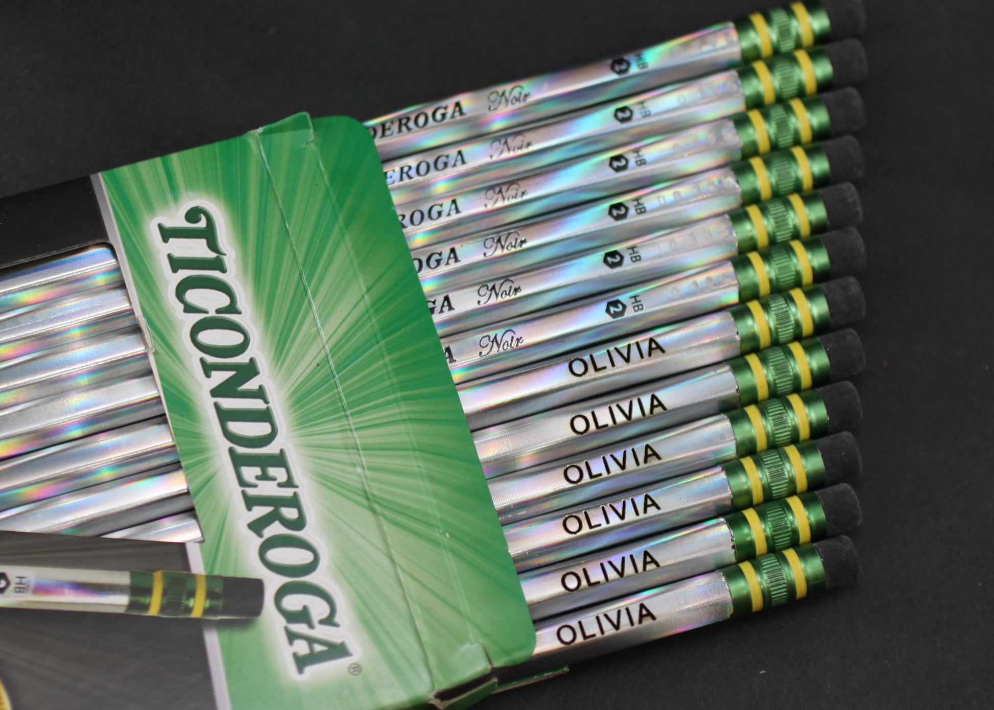 6, 12 or 24 Pack of #2 Ticonderoga Noir Black Wood Pencils engraved with your name or phrase. This is a perfect way to keep items identified when going back to school. The engraving is deep and will not wear off or disappear. The order includes a single name/phrase engraved on pencils all.