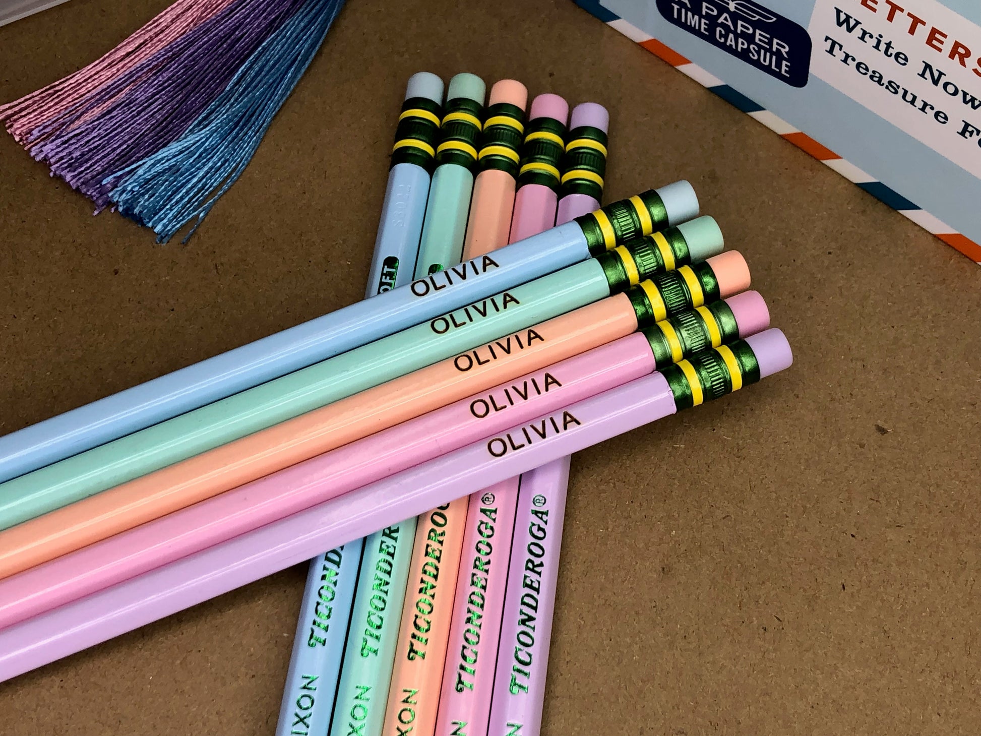 Personalized Pastel Pencils, 5 or 10 Pack of #2 Pencils, Engraved Ticonderoga Pastel Pencils