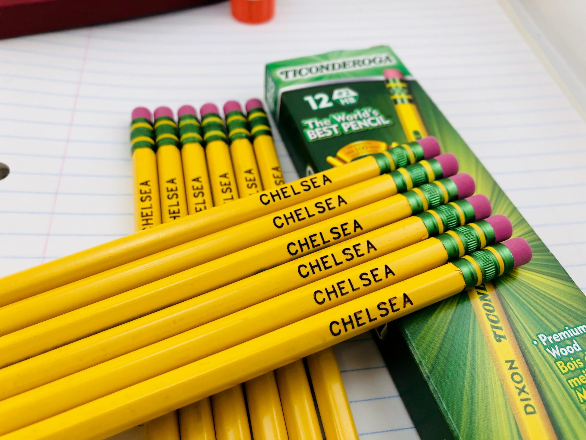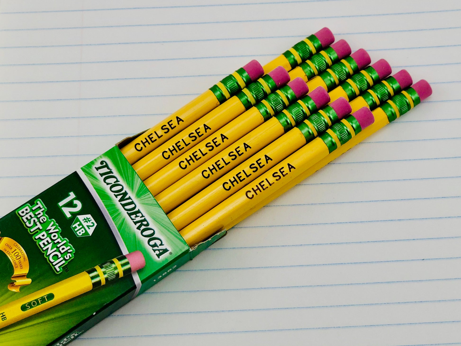 Personalized Pencils, 12 Pack, #2, Engraved Yellow Ticonderoga