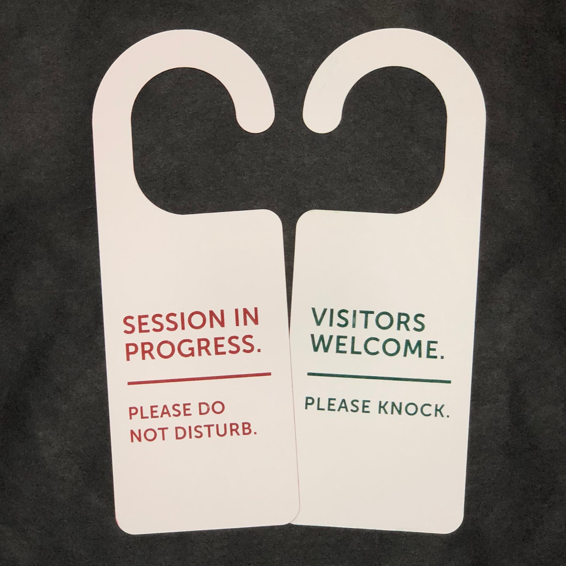 These "Session In Progress, Please Do Not Disturb" door signs will help us keep everyone aware of what's going on in the office or consultation room.
